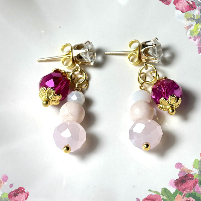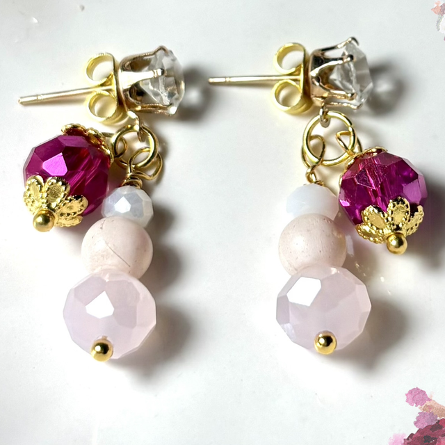Ces boucles d'oreilles Rosy apportent une touche de couleur avec des perles cristal et fuschia. Légères et scintillantes, elles rehausseront n'importe quelle tenue.