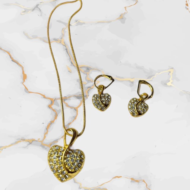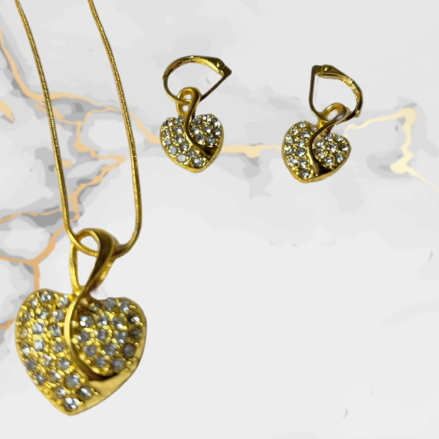 💛 Parure Cœur Dorée – Collier & Boucles d’Oreilles Dormeuses