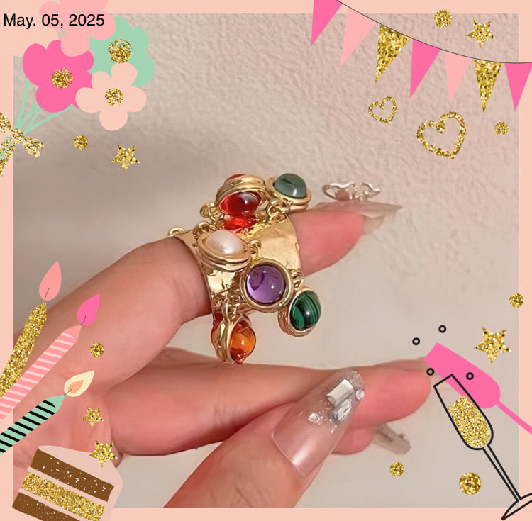 Découvrez l'élégance raffinée de la Bague Esther, une création sophistiquée qui marie l'art des perles encerclées à l'éclat doré de l'acier inoxydable. Cette bague unique incarne l'originalité et le raffinement dans un design captivant.