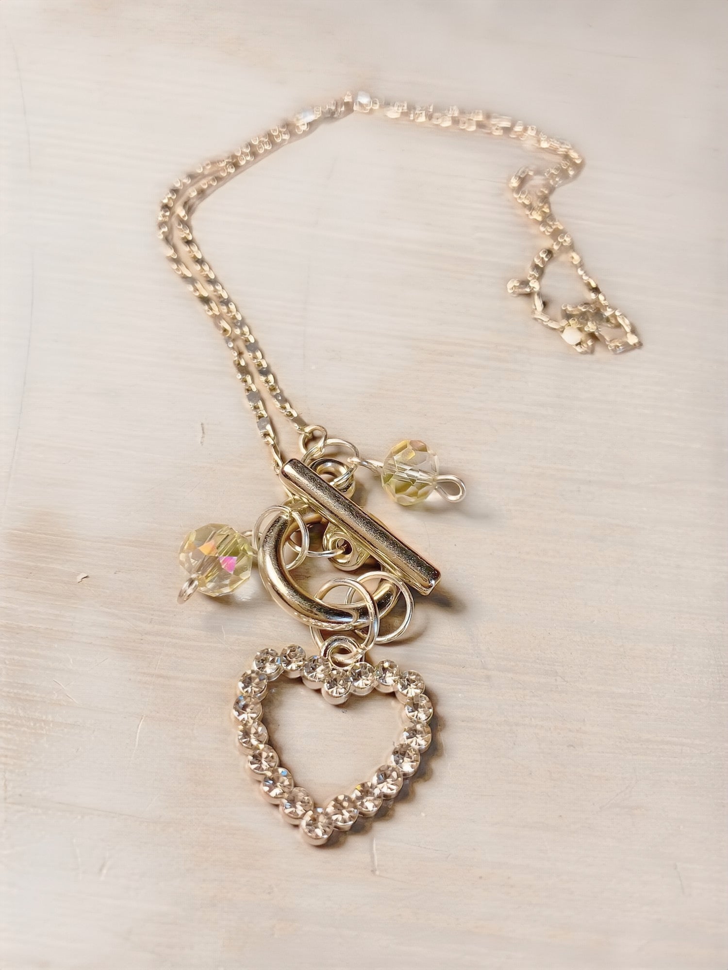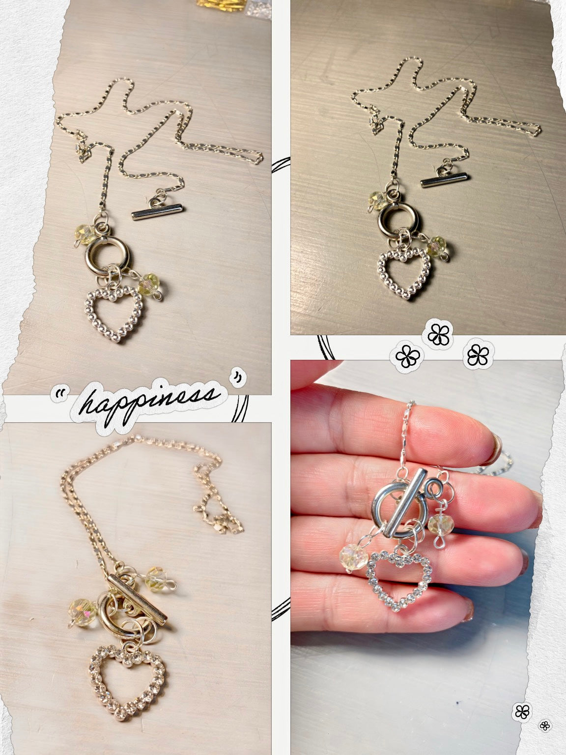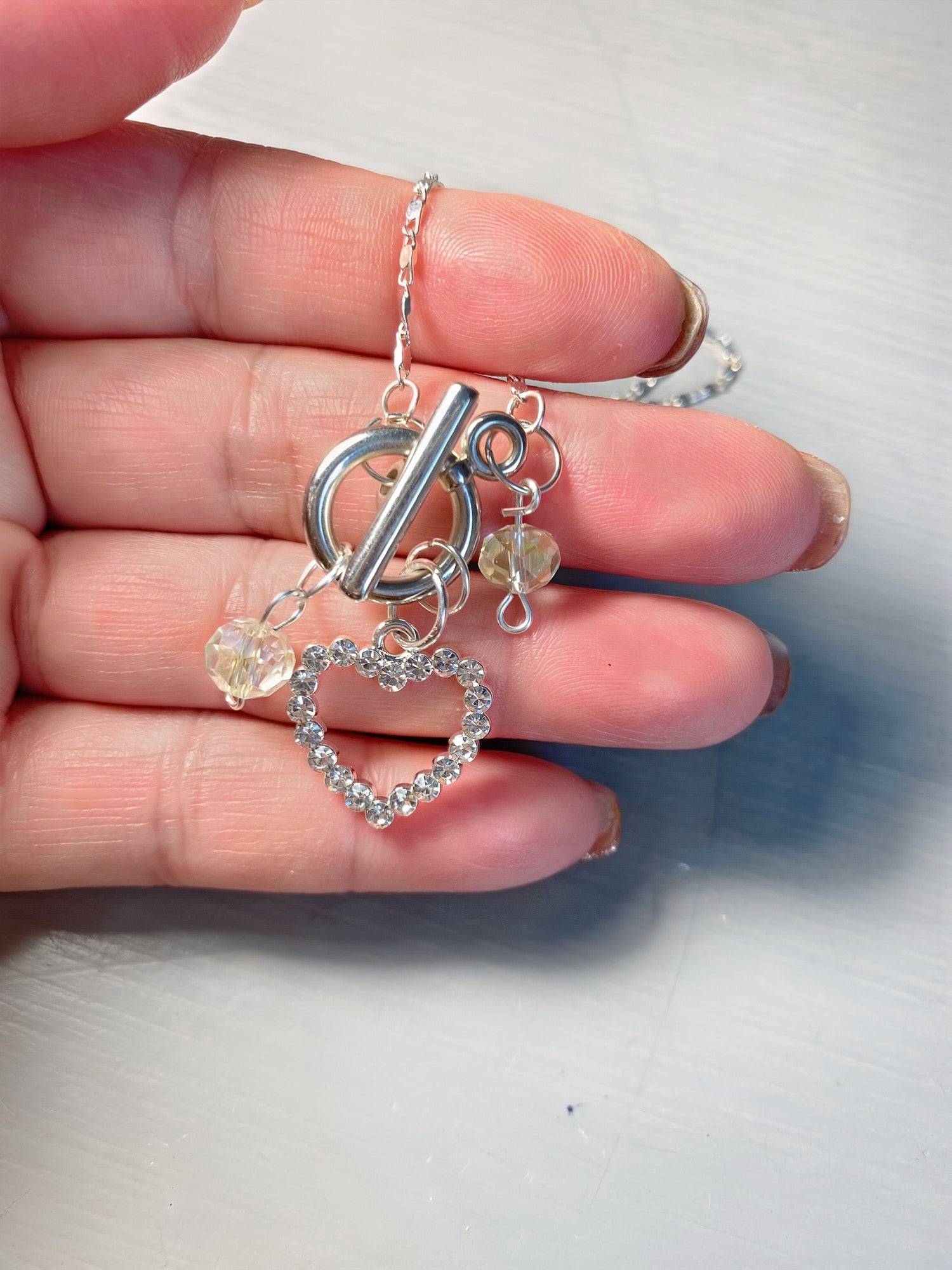 Le Collier Celia coloris argent a un joli cœur en strass avec des perles facettes en verre de Bohème