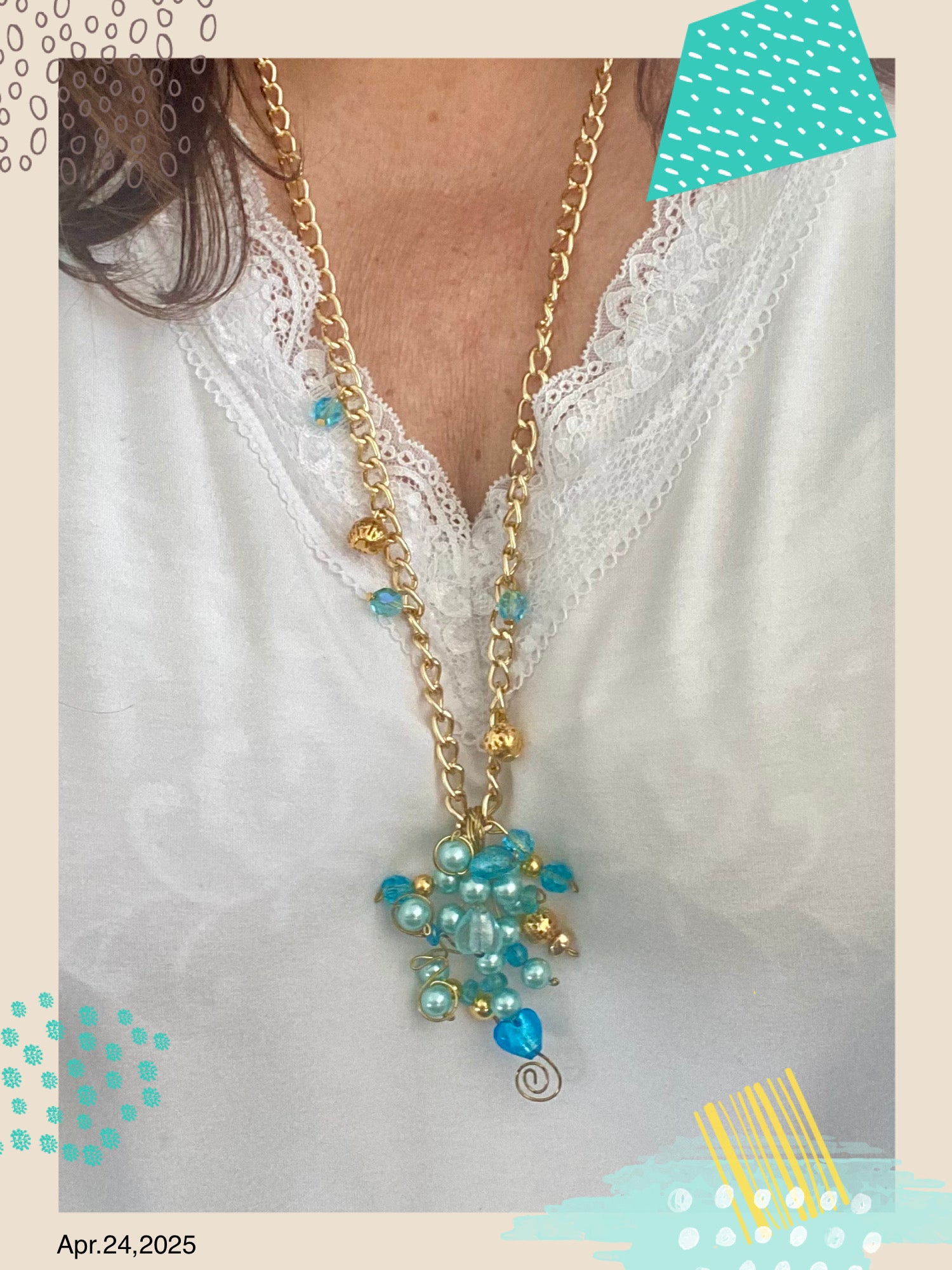 Évadez-vous vers des horizons enchanteurs avec le Collier Holyday, un sautoir d'exception qui capture l'essence des vacances éternelles. Cette création unique marie les reflets turquoise de la Méditerranée aux éclats nacrés des plus belles perles.